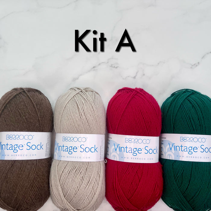 Pattern: Pattern is Cup of Hot Cocoa Socks by Stone Knits. The pattern is NOT included in the kit but can be purchased on Ravelry.