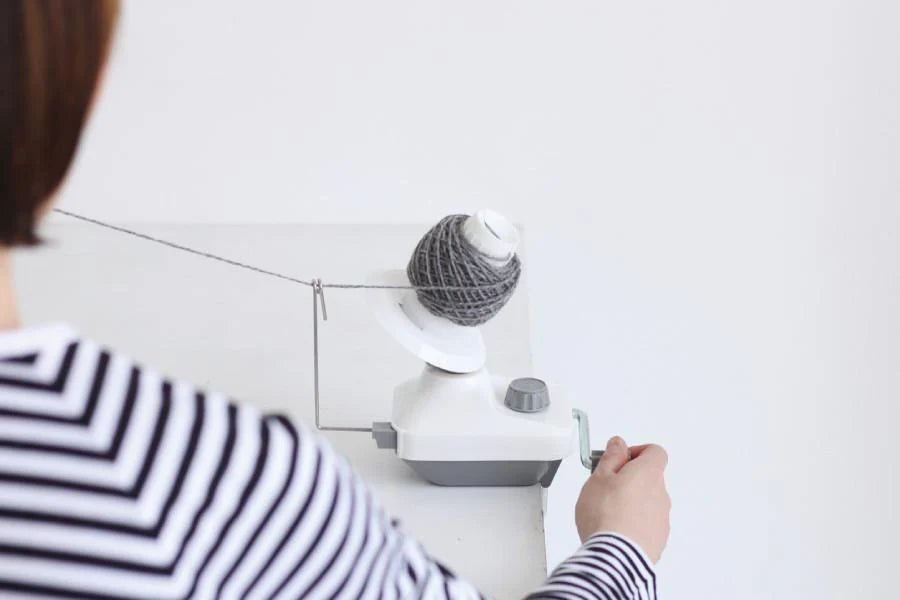 DARUMA's stylish ball winder with white and gray tones matches the Daruma Swift. The winder is stable and easy to use with an adjustable base that fits most table edges. Unlike the old product, the bottom piece is metal and more durable.